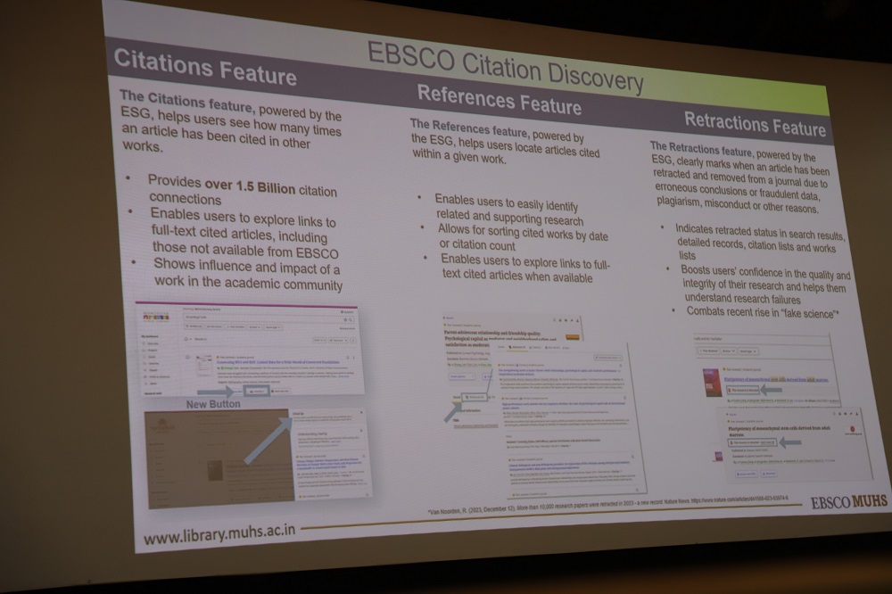 Central Library digital section organised onsite training session is for all teaching staff & students (UG, PG & Ph.D.) at EBSCO MUHS-Digital Library Consortia.